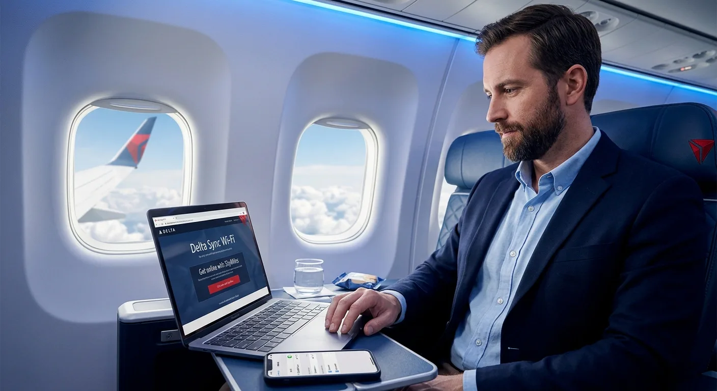 Delta Sync Wi‑Fi is the in-flight internet service offered on many aircraft operated by Delta Air Lines. It allows passengers to access online services while flying at cruising altitude.